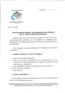 Présidentielle du 12 avril 2026 : La Cour constitutionnelle recrute des délégués observateurs