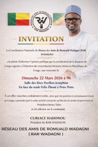Prévue pour le dimanche 22 mars 2026 à 9 heures, cette séance d’échanges se tiendra à la salle des fêtes Pavillon Joséphine, située en face du stade Félix Éboué à Poto-Poto. Elle s’inscrit dans une volonté affirmée de rapprocher davantage les Béninois de l’extérieur des enjeux sociopolitiques nationaux. Selon les organisateurs, cette rencontre sera consacrée au bilan des dix années de gouvernance du président Patrice Talon. Elle offrira également un cadre de réflexion sur les perspectives de continuité des réformes engagées, dans un contexte marqué par les échéances électorales à venir. À travers cette initiative, le RAR-WADAGNI entend renforcer l’adhésion des Béninois de la diaspora aux idéaux portés par son candidat, tout en favorisant un dialogue constructif autour des acquis et des défis futurs. L’appel est ainsi lancé à une forte mobilisation des compatriotes vivant au Congo, invités à prendre part activement à cette rencontre. Pour Curiace Hadonou, cette activité constitue une étape importante dans la consolidation du soutien autour de la vision portée par Romuald Wadagni, en mettant l’accent sur la continuité des réformes et la préservation des acquis.